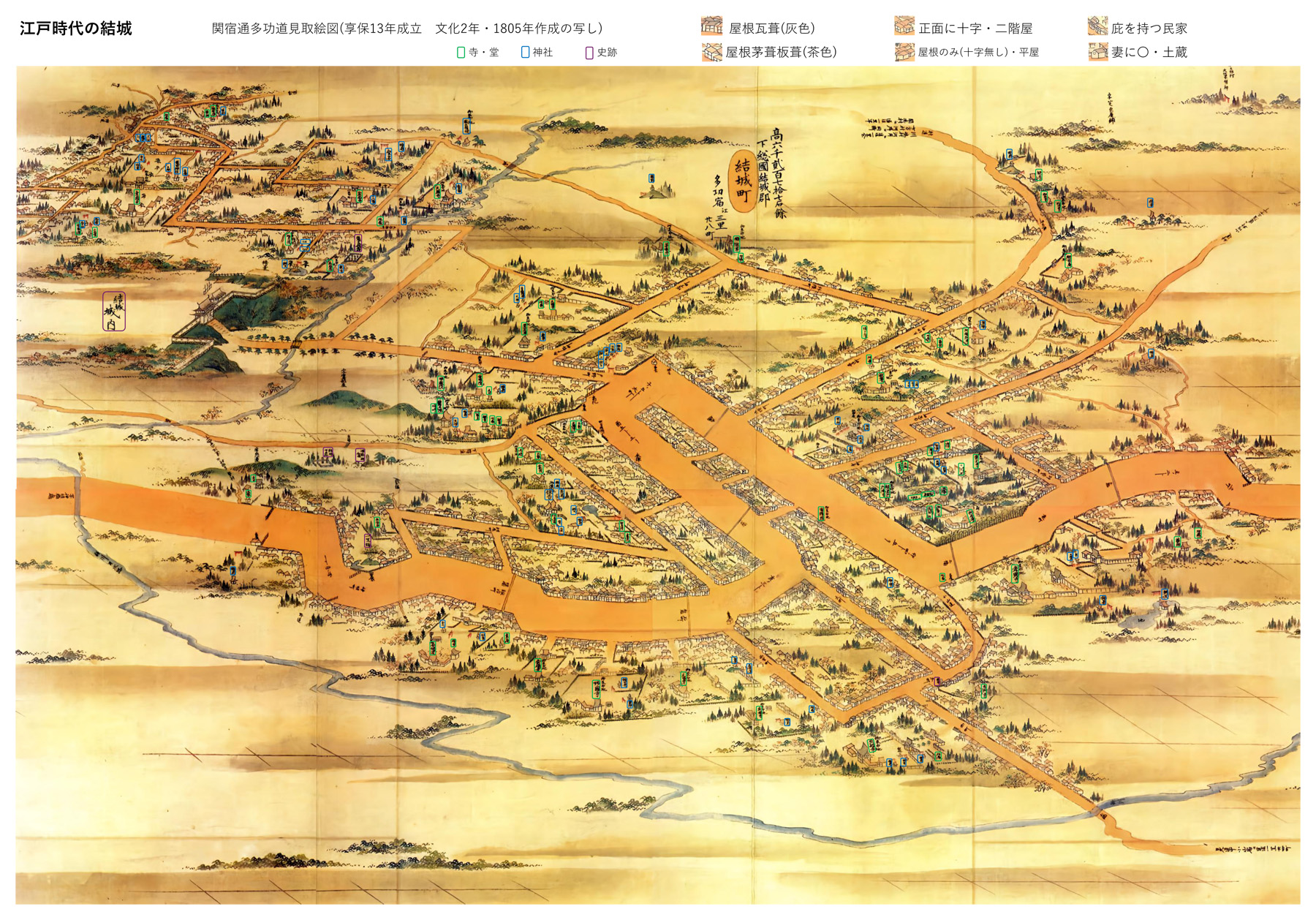 時代別結城まちの地図(絵・写真入)江戸・明治・大正・昭和・平成・令和